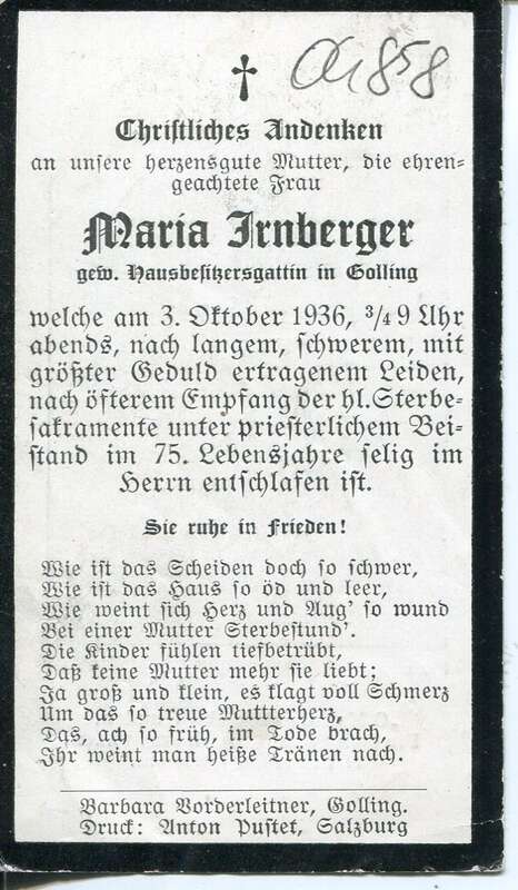 Maria Irnberger (†1936)