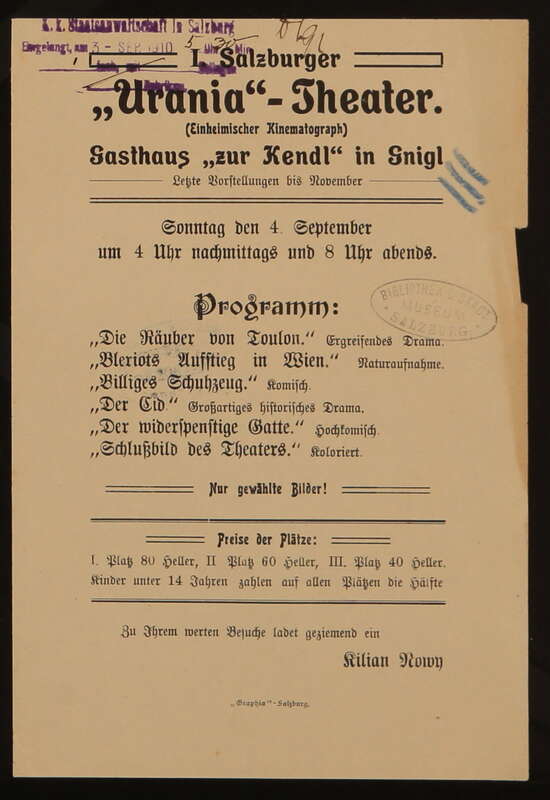 I. Salzburger "URANIA"-Theater, Nowy, Kilian