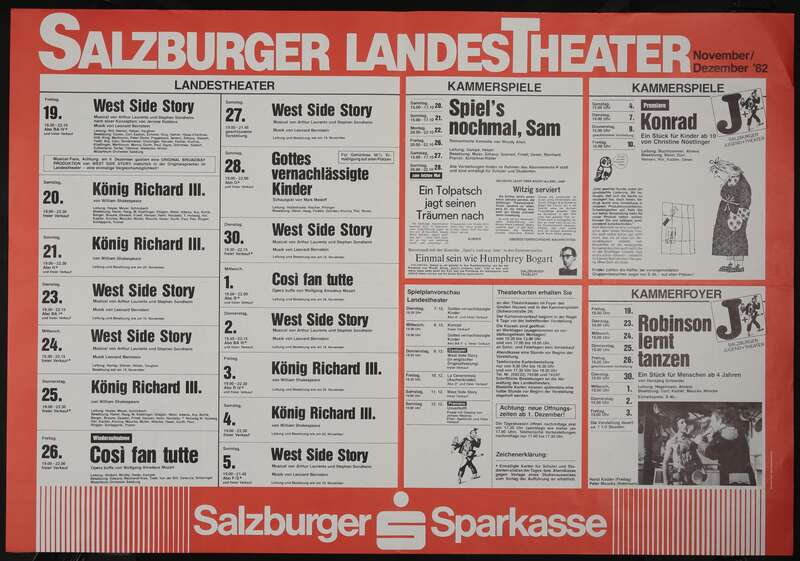 Theaterzettel vom 19.11.1982 bis 10.12.1982.